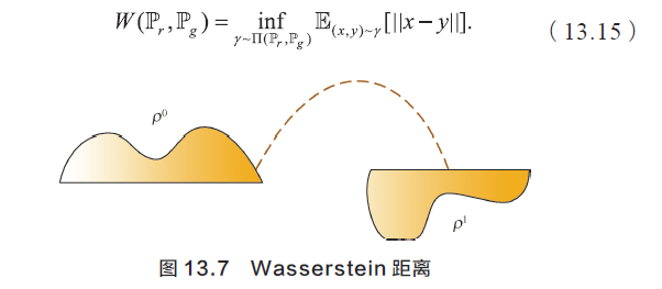 你需要线索,而不是简单撒网。处在高维空间,对抗隐秘的低维空间,不能再用粗暴简陋的方法,需要有特殊武器,这就是Wasserstein 距离(见图13.7),也称推土机距离(EarthMover distance)