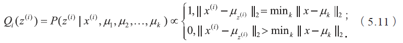 达到最小,此时每个样本x(i) 对应的簇z(i) 已确定,因此每个簇k 对应的最优中心点μk 可以由该簇中所有点的平均计算得到,这与K 均值算法中根据当前簇的分配更新聚类中心的步骤是等同的。