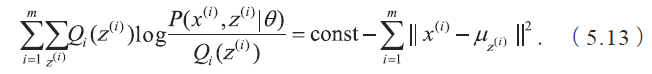 剩下的事情就是说明K 均值算法与EM 算法的关系了。K 均值算法等价于用EM 算法求解以下含隐变量的最大似然问题: