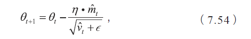 ,这点与AdaGrad 方法不同,不是gt2从开始到现在的加和,而是它的期望。它们的物理意义是,当||mt||大且vt 大时,梯度大且稳定,这表明遇到一个明显的大坡,前进方向明确;当||mt||趋于零且vt大时,梯度不稳定,表明可能遇到一个峡谷,容易引起反弹震荡;当||mt||大且vt趋于零时,这种情况不可能出现;当||mt|| 趋于零且vt 趋于零时,梯度趋于零,可能到达局部最低点,也可能走到一片坡度极缓的平地,此时要避免陷入平原(plateau)。另外,Adam 方法还考虑了mt,vt 在零初始值情况下的偏置矫正。具体来说,Adam 的更新公式为