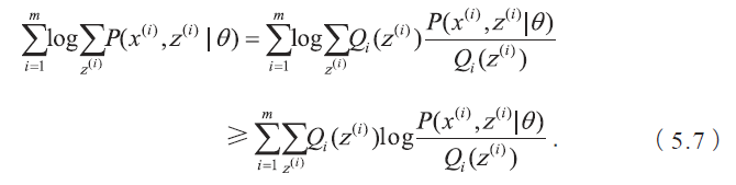 由于z(i) 是未知的, 无法直接通过最大似然估计求解参数,这时就需要利用EM 算法来求解。假设z(i) 对应的分布为,并满足