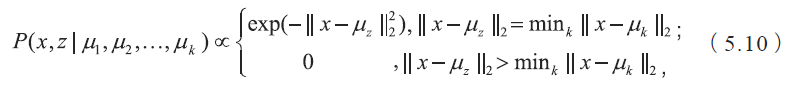 其中是模型的隐变量。直观地理解,就是当样本x 离第k个簇的中心点μk 距离最近时,概率正比于