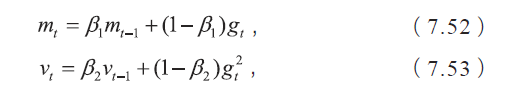 其中β1,β2 为衰减系数,mt 是一阶矩,vt 是二阶矩。