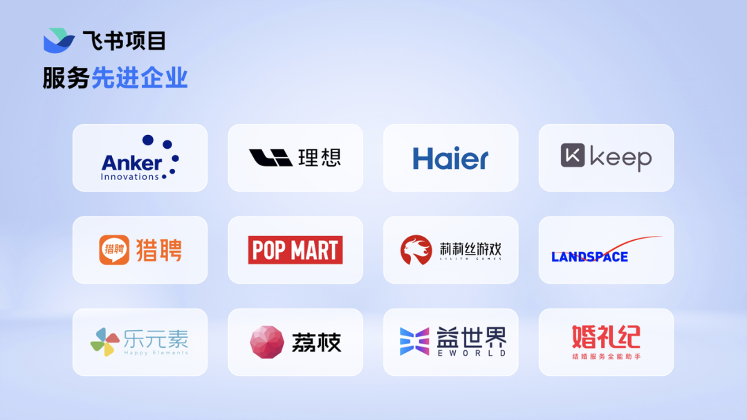 由此,抖音团队内部开始尝试自研一个可以将所有工具和信息都打通的项目管理与版本迭代的工具,这也是飞书项目诞生之初的使命。历经 2 年的内部打磨与沉淀,2020 年 8 月,飞书项目不仅成为抖音团队背后高效的“生产线”,也成为字节内部统一的项目管理平台。2022 年 5 月,飞书项目正式对外发布,把沉淀的项目管理经验赋能给更多行业的产研团队,和大家一起共创,不断丰富飞书,让更多的团队降本增效又提质,交付更好的产品。目前,飞书项目已签约 100 余家企业客户,包括理想、安克创新、Keep、猎聘等各行业的先进企业。