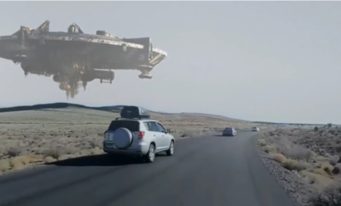 视频中的蓝色的天空背景也随飞船变成了灰蒙蒙的色调,一种世界末日的即视感有木有?