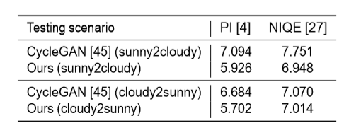 可以看出,该方法在定量指标和视觉质量方面都优于CycleGAN。