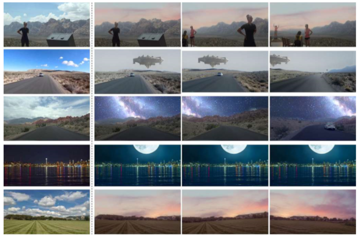 这项AI处理方法来自密歇根大学的一位华人博士后的最新研究。该方法基于视觉技术可一键调整视频中的天空背景和天气转换。