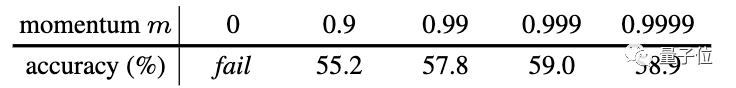 在实验中,研究人员还发现,相对较大的动量(m=0.999)会比较小的动量(m=0.9)要好得多。这表明缓慢演变的键编码器是利用队列的关键所在。