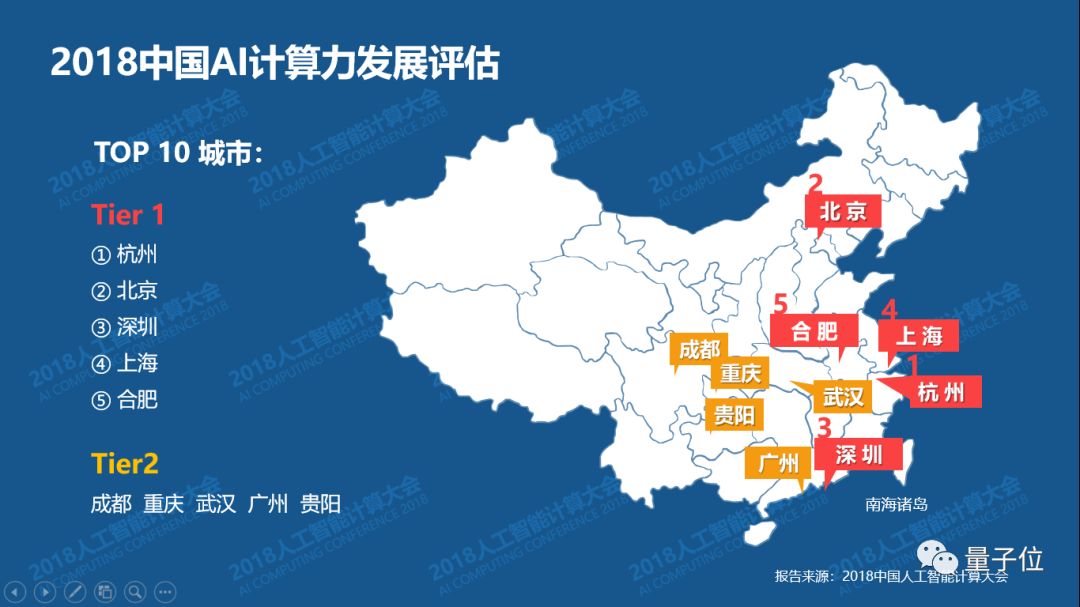 《中国人工智能计算力发展评估报告》由IDC和浪潮联合研究发布,旨在评估中国人工智能发展的现状,探索中国企业的破局之道。在2018年报告公布的中国计算力领先城市排名中,杭州、北京、深圳、上海和合肥成为中国领先的人工智能计算力城市排名的前五名,今年这一排名是否会发生变化值得关注。
