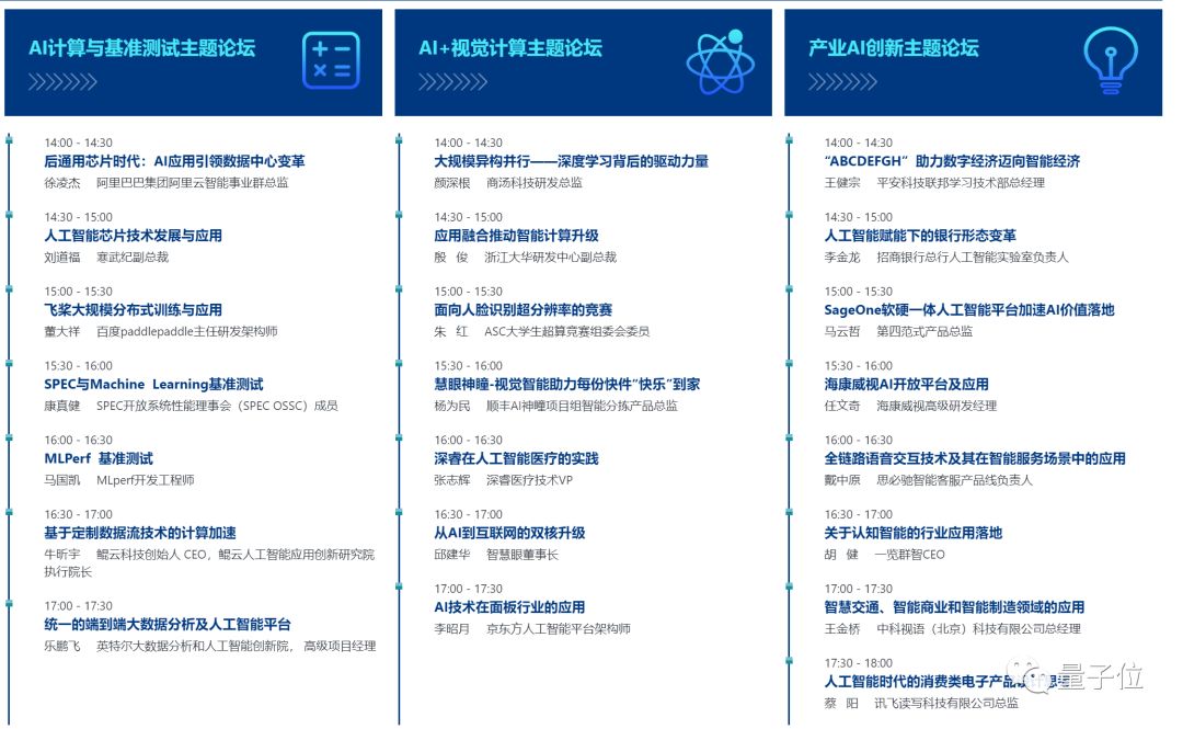 在主论坛之外,AICC2019还设立了自动驾驶AI计算与基准测试产业AI创新AI+视觉计算AI+创投五大主题论坛,来自阿里巴巴、百度、寒武纪、英特尔、浪潮、商汤科技、顺丰、京东方、广汽、平安科技、招商银行、光源资本、红杉中国等知名公司的数十位公司创始人、高管以及技术专家等,将分享人工智能技术在不同行业的应用,以及创业前景等,全面展现计算将如何造就人工智能时代。