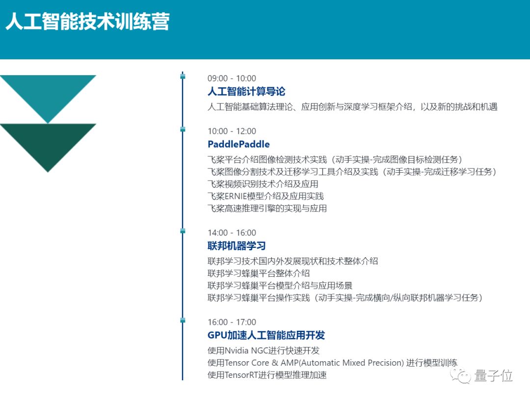 此外,来自百度的专家将讲解源于产业实践的深度学习框架飞桨平台(PaddlePaddle),涵盖图像检测技术实践、分割技术及迁移学习工具介绍及实践、视频识别技术介绍及应用、ERNIE模型介绍及应用实践以及高速推理引擎的实现与应用等丰富内容。融汇理论与实践的课程设置,将帮助学员从零入门快速掌握联邦学习与百度飞桨的使用技巧。