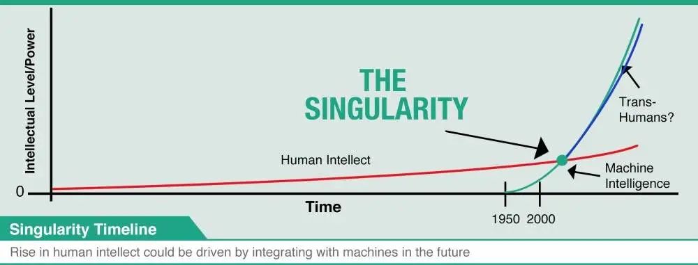 就像人工智能领域中「奇点」这个概念,那是一个人工智能变得比人类更聪明的时刻,是人工智能>人类智能的时刻。