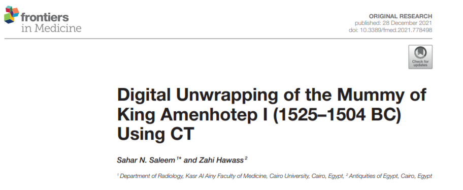 本论文的第一作者萨利姆和著名埃及学家Zahi Hawass 曾在 2005 年启动的埃及古物部项目中研究了 40 多具木乃伊,并于 2019 年在开罗埃及博物馆的皇家木乃伊画廊进行了 CT 扫描。