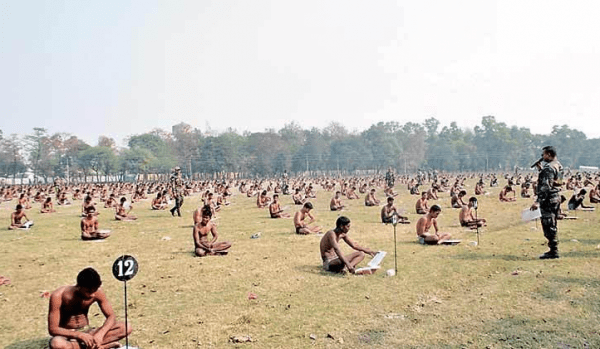 2016年,印度比哈尔邦的一场招兵测试中,逾千考生被要求只穿内裤,坐在空旷草地上作答。陆军区域办事处消息人士表示,这项安排主要目的是杜绝作弊,监考人员下令考生自行脱衣,“以节省向这么多人搜身的时间”。虽然当时有考生匿名投诉,但也别无选择只能就范。