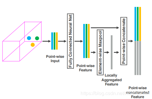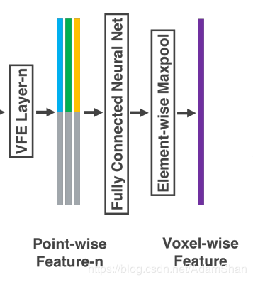 由于VFE层中包含了逐点特征和逐元素特征的连接,经过多层VFE以后,我们希望网络可以自动学习到每个体素内的特征表示(比如说体素格内的形状信),那么如何学习体素内的特征表示呢?原论文的方法下图所示: