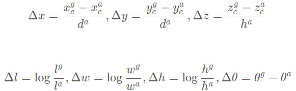 分别表示神经网络的正样本输出的标注框和真实标注框。损失函数的前两项表示对于正样本输出和负样本输出的分类损失(已经进行了正规化),其中