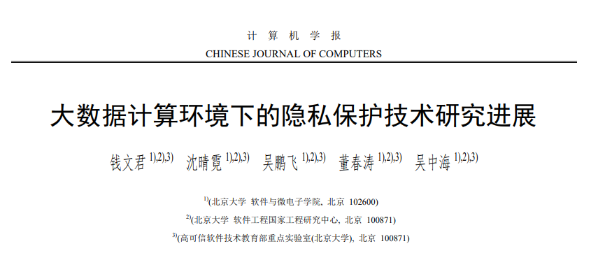 【导读】北京大学最新大数据计算环境下隐私保护技术进展。