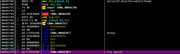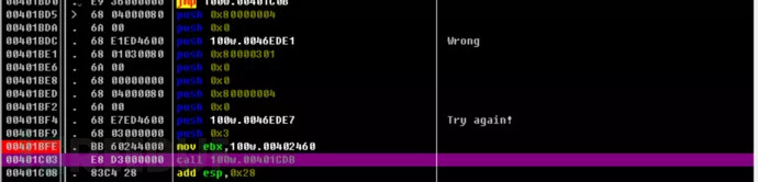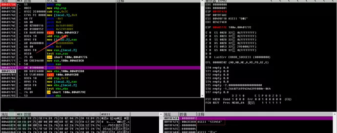 ok,找到函数地址为0X00401CE7(最靠近结果的call)