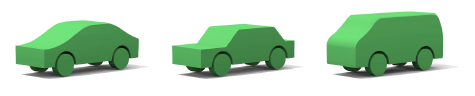 (d)由立方体和圆柱体平滑地组合而成的汽车。
