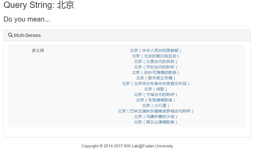 以通用领域的知识库CN-DBpedia为知识库进行的实体链接会带来额外的挑战。通用领域的实体识别与链接具有两个主要特点:第一个特点是实体量巨大。这不仅对候选实体增加了大量噪音,而且也需要对实体进行相关领域判断,这样一来,实体识别与链接就需要更多的考虑,如图2所示,在CN-DBpedia里,“北京”除了中国首都之外,还能指代一首歌、一张专辑、一首诗、一部小说和一个小行星的名字。第二个特点是实体界限模糊。通用知识库几乎包含了所有词,包括一些平凡的实体,比如“图片”、“钢笔”,还有一些成语俗语,比如“危言耸听”、“厚德载物”等等。但这些实体在实际应用中通常是不希望被识别和链接出来的,这对实体词的判断带来了很大的难度。