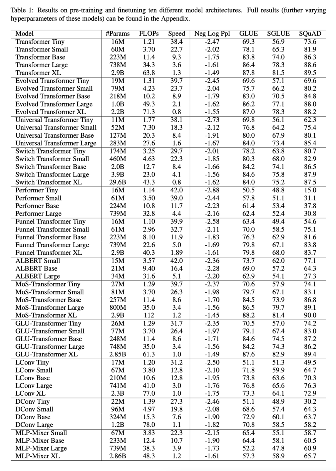 在多个计算区域和范围内(从 1500 万到 400 亿参数)预训练和微调了十种不同的模型架构