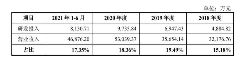 这些也需要不断的研发投入和热钱涌入。从研发投入上来看,2018年——2021年上半年,极飞研发投入不断增加,金额分别为 4884万元、 6947万元、9735 万元和 8130 万元,占营收比对应为15.18%、19.49%、18.36%和 17.35%。