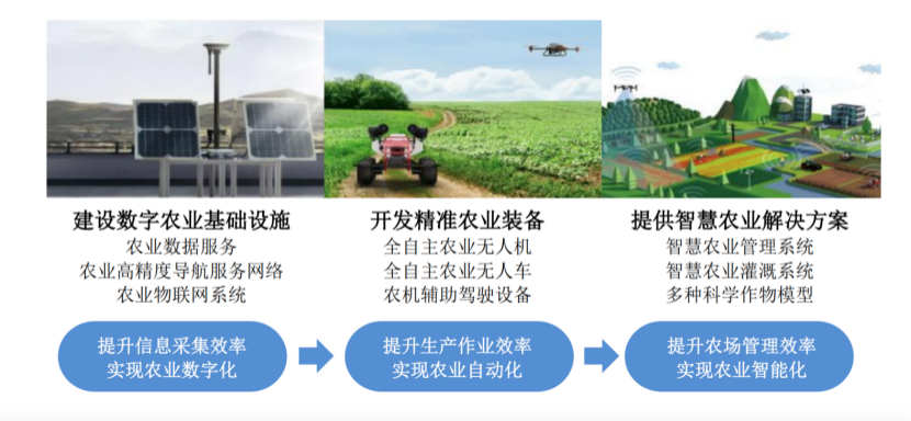 具体而言,通过遥感无人机,可以获取农田影像,勾勒出农田边界、作物密度和生长趋势,再通过AI学习计算出区域需要消耗的农药或化肥用量,形成“农田处方图”。农民只需要按照“处方”购买农资,并且根据“处方”让农业无人车、无人机执行系统命令。