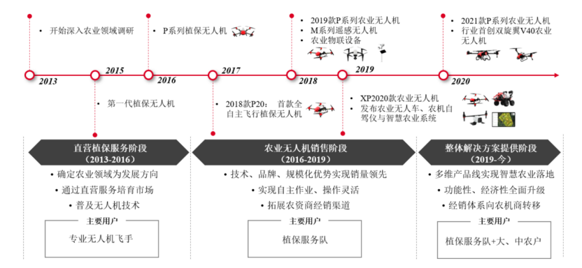 2016年,大疆采用“跟随者策略”,也发售植保无人机。自此,农业无人机市场双雄出现。