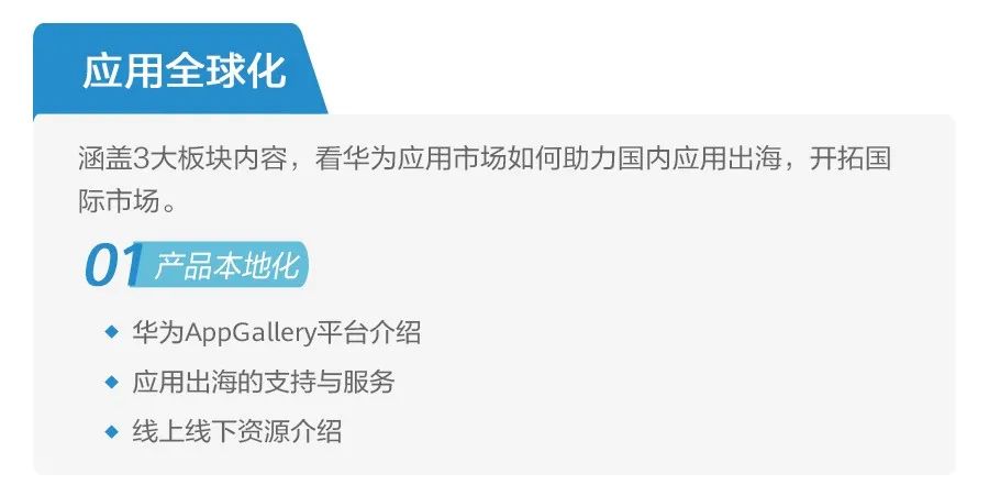 在应用全球化话题中,讲师会结合对移动应用市场的洞察,分享华为应用市场是如何基于自身的服务矩阵,助力产品出海,实现产品全球化。
