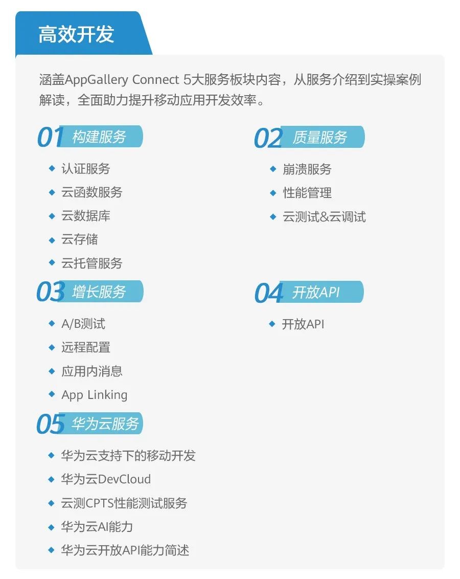 针对产品开发者,AppGallery Connect不仅为大家提供了多项开发功能及服务,还在本次课程中,对平台搭建、测试&调试、崩溃等开发和质量常见问题进行解读与指导,帮助大家实现高效开发,降低开发、运维成本,打造高质量应用。