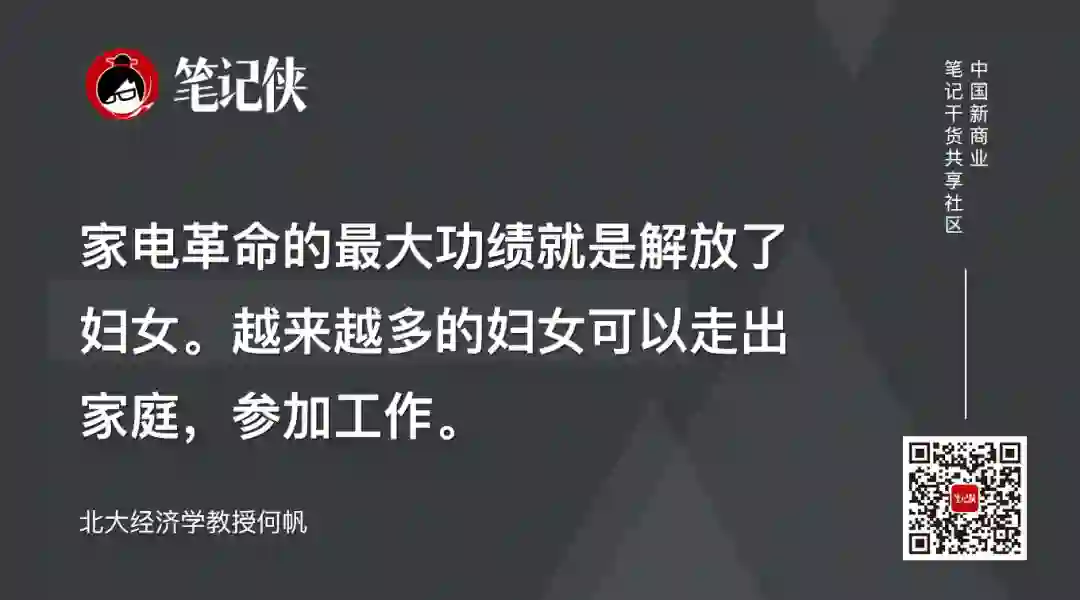 家电革命的最大功绩就是解放了妇女。越来越多的妇女可以走出家庭,参加工作。