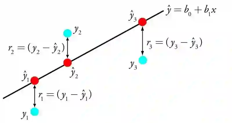 我们将在给定输入值 x 的条件下预测 y,线性回归学习算法的目的是找到系数 B0 和 B1 的值。