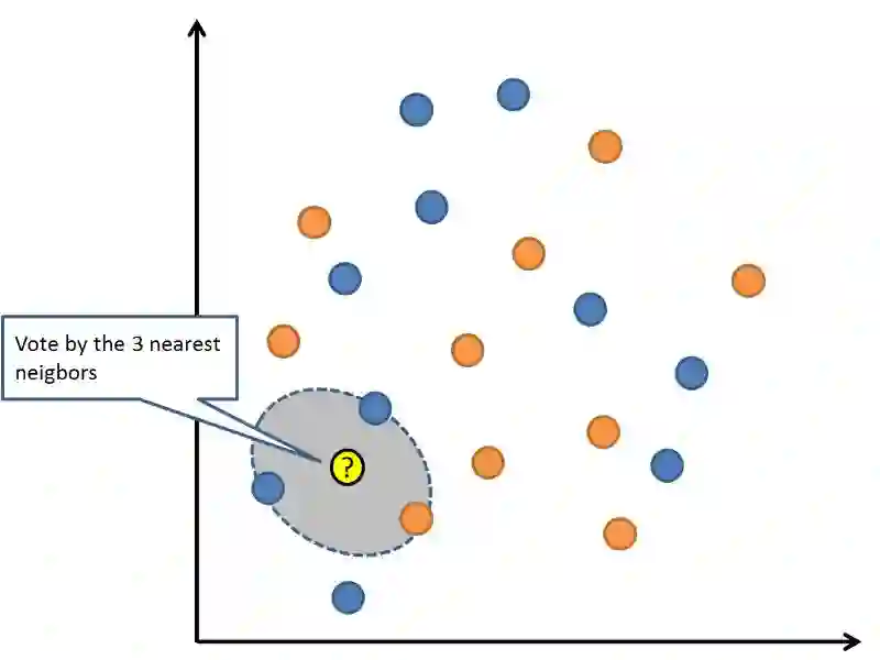 对新数据点的预测结果是通过在整个训练集上搜索与该数据点最相似的 K 个实例(近邻)并且总结这 K 个实例的输出变量而得出的。对于回归问题来说,预测结果可能就是输出变量的均值;而对于分类问题来说,预测结果可能是众数(或最常见的)的类的值。