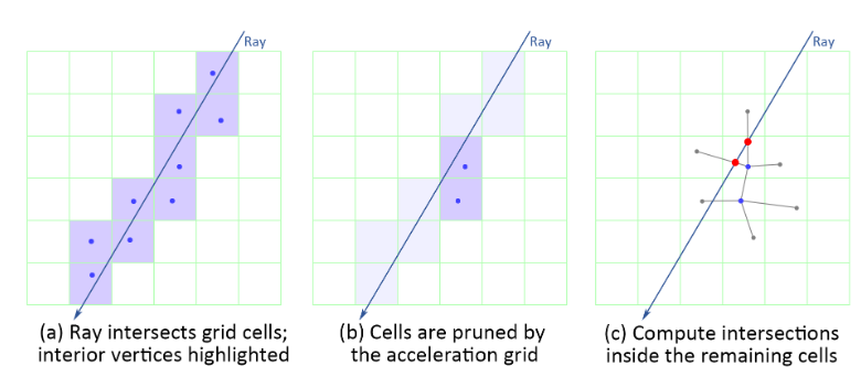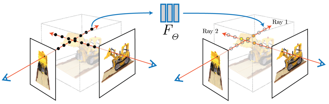 传统的NeRF实现使用体积渲染算法,用于在光线沿线的数百个采样位置为每个像素都运行一次大规模MLP,以便估计和密度和辐射度。这种渲染过程对于交互式的可视化来说太慢了,没法用于实时渲染。