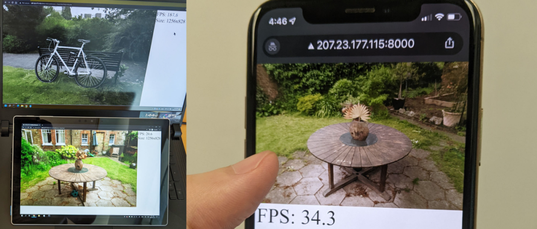 由于MobileNeRF采用了标准的GPU光栅化管道,所以需要的实时渲染器可以在HTML网页中运行。