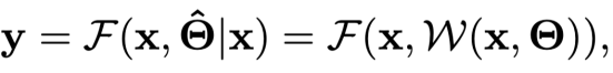 前面介绍的具有动态结构的网络往往需要特别的结构设计、训练策略或超参数调整等。另一类工作则保持网络结构在推理过程中不变,根据输入样本自适应地调节模型的(部分)参数,从而提升模型的表达能力。静态网络的推理过程可表示为