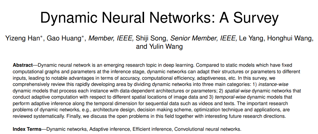 本文对近年来引起较大研究热情的动态神经网络 (Dynamic Neural Networks) 做了一个比较全面和系统的综述。