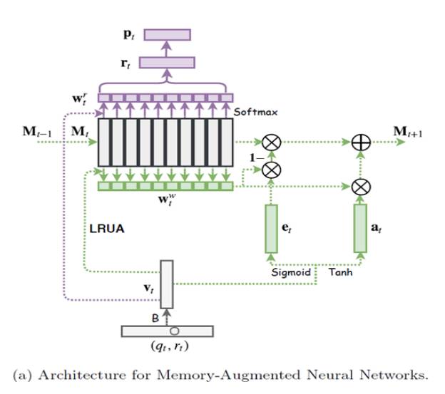 MANNs一般使用一个记忆矩阵或两个静态记忆矩阵,DKVMN使用一个Key矩阵和一个Value矩阵。