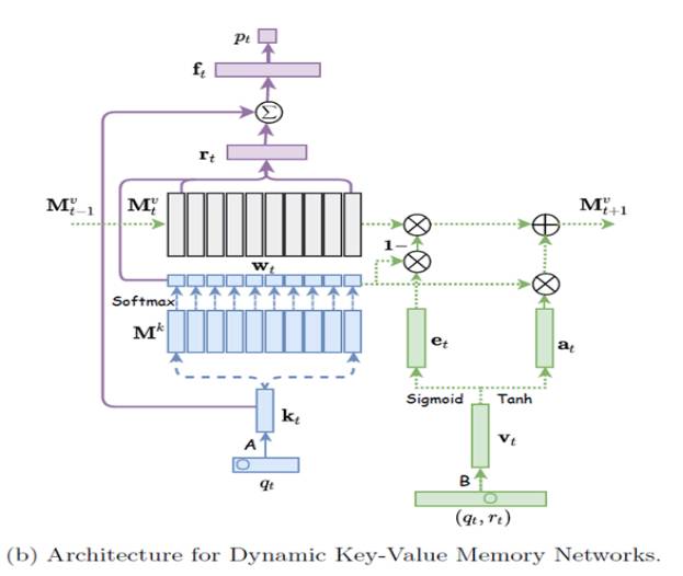 对现有的memory-augmented neural networks (MANNs)做出改进,提出Dynamic Key-Value Memory Networks (DKVMN)。