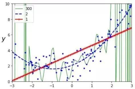 图 | 欠拟合(红) / 正常拟合(蓝) / 过拟合(绿)