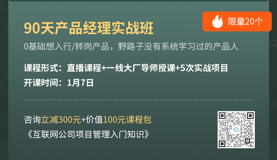 为了让大家更有底气的应对未知风险,起点课堂联合一线大厂实战导师,打造了产品/运营/数据分析等一系列体系课以及专项突破课,帮助大家从入门到进阶,持续实战-复盘-输出,提高自身竞争力~
