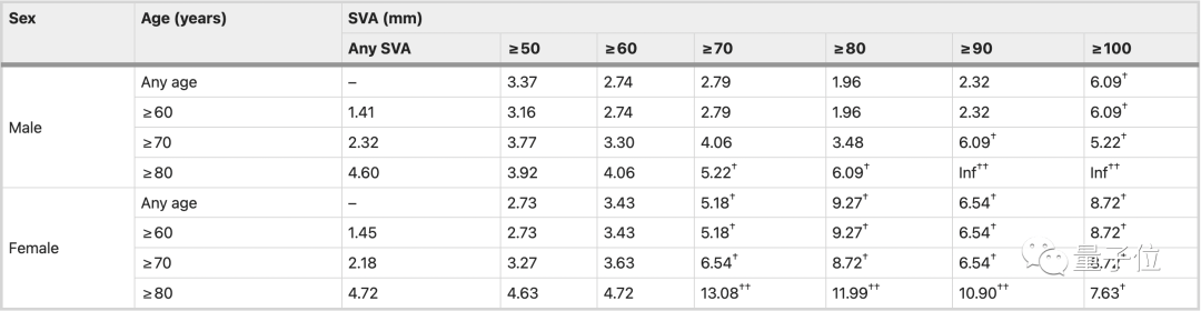 在男性中,任何年龄SVA ≥100mm,≥70岁的SVA ≥90mm,≥80岁的SVA≥70mm的人更有可能有认知功能下降的风险。