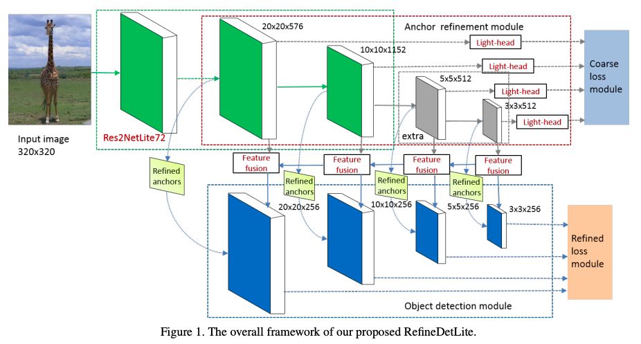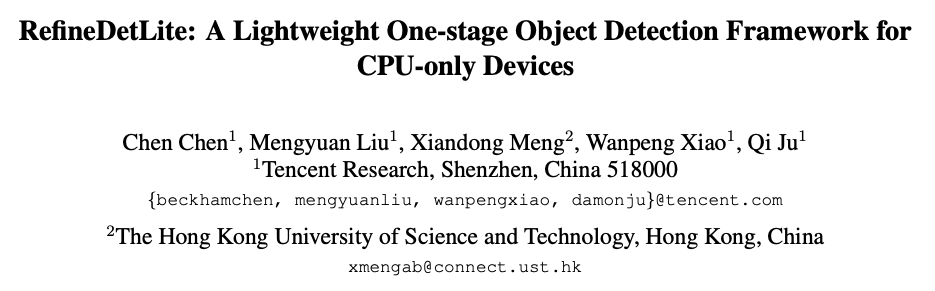 前几天腾讯公布了一篇论文RefineDetLite: A Lightweight One-stage Object Detection Framework for CPU-only Devices,提出一种面向CPU设备的轻量级一阶段目标检测网络RefineDetLite,其在MSCOCO 上可以达到精度29.4 AP,同时在Intel 6700 @3.4G HZ 型号CPU上可以跑到130ms/图片(320X320),是目前轻量级通用目标检测网络的佼佼者。