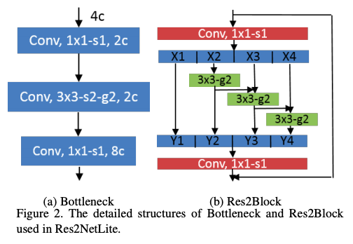 其最大的改进点是考虑到分类网络的骨干网并不适合目标检测,设计了轻量级的 Res2NetLite 骨干网,如下图: