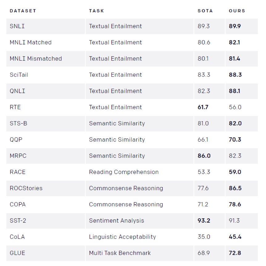 表2,GPT在多项 NLP 任务上超越前人