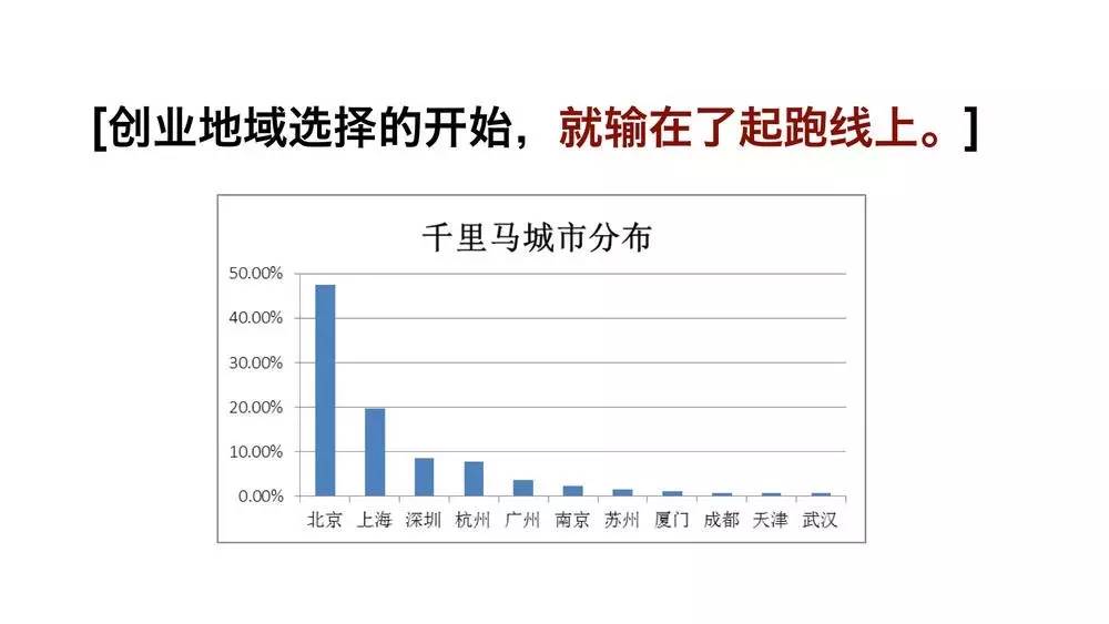 创业是资源、资本、人才的角斗场,北上广深杭出现大公司的比例,远超成都、天津、武汉等城市,更不用说三四线城市。城市的发展具有马太效应,所以从成功率来说,创业者选择一线城市去保证人才、资源、资本以及优惠政策的供给是理性选择。