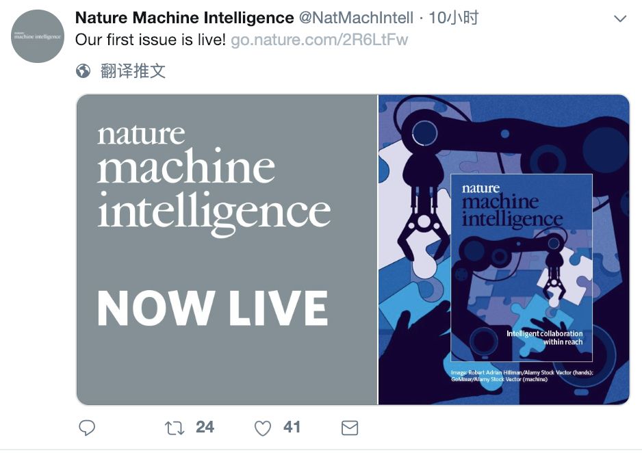 但如今,《Nature Machine Intelligence》的第一期还是如期到来,《Nature Machine Intelligence》介绍了 7 篇新研究,读者可在线浏览(能够看到完整论文内容)。