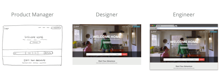 设计师接收需求,探索低保真原型,并逐渐创建高保真模型