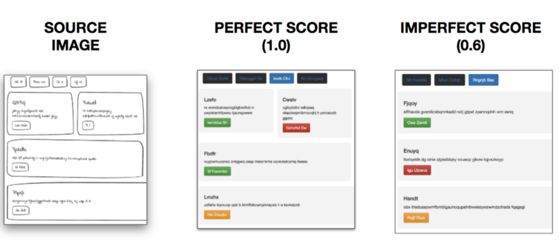 基本上,BLEU比较生成文本和参考文本的n元序列,以创建准确率变体。用BLEU评估这一项目很合适,因为它基于实际生成的HTML元素,以及元素之间的关系。