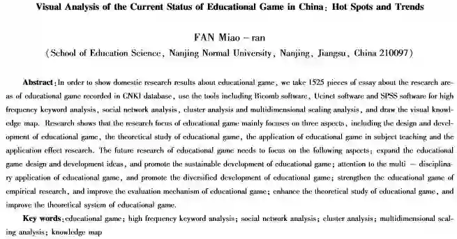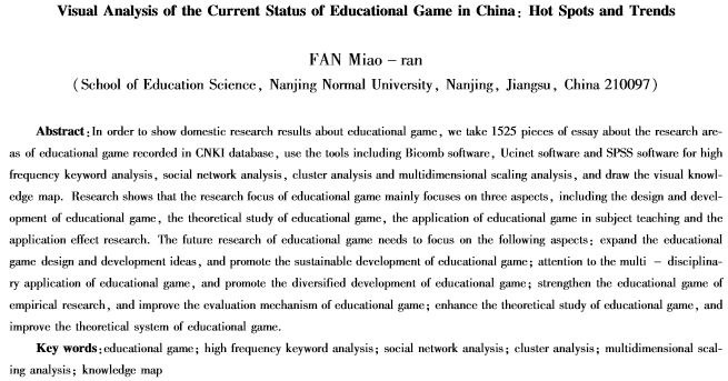 关键词:教育游戏;词频分析;社会网络分析;聚类分析;多维尺度分析;知识图谱